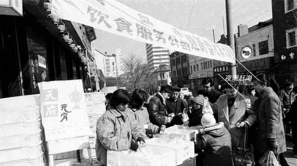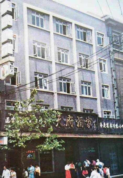 曾經的天府元宵,更是人稱“元宵大王”,在上世紀的八九十年代,中山路210號的天府酒傢生意異常紅火。照片右前方,可見中山路“回民食品店”。