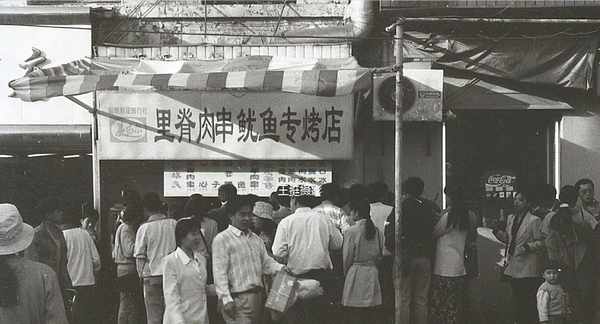 中山路“美達爾”烤肉前的火爆場景,島城兩傢最有名的燒烤店在這裡起步,在王姐燒烤開始紅火之前,“美達爾”的生意應該是最好的。後來兩傢不但相鄰,也成瞭競爭對手。