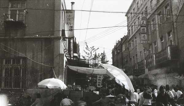 博山路、四方路,估計很多年輕人想象不到這裡曾經的繁華喧囂。照片左側的“十樂坊飯店”與右邊的“天德塘”,是無數老青島難忘的老街裡情懷。(王挺攝影)