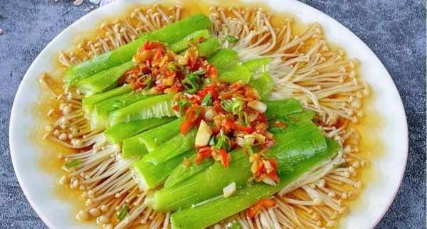 二、蒜蓉金針菇蒸絲瓜