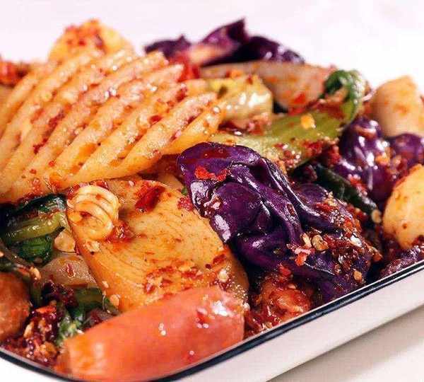 麻辣拌是遼寧撫順的一道傳統菜肴,在四川麻辣燙的基礎上改良而成,幾乎沒有湯水,但氣質卻因其醬料而更豐富,有麻辣、醬香、甜辣、酸甜等。所以,可以簡單地認為(當地人肯定不樂意[打臉]麻辣燙重在“燙”煮的湯水,麻辣香鍋重在“炒”制的手藝,而麻辣拌的靈魂則是“拌”進去的醬料。