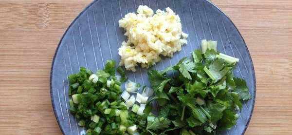 這裡就是常見的蔥、蒜和香菜瞭。喜歡吃辣的朋友,還可以往裡面加點小米辣或是剁碎的幹辣椒,顏色好看,氣質也豐富瞭不少。