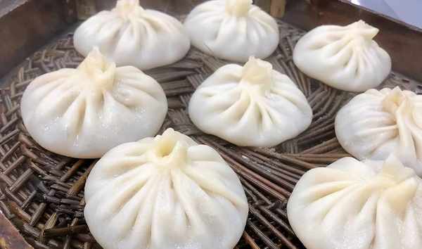 跟蒸籠黏在一起的好幾個湯包