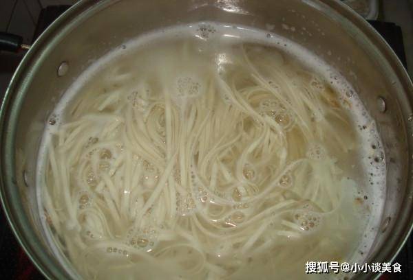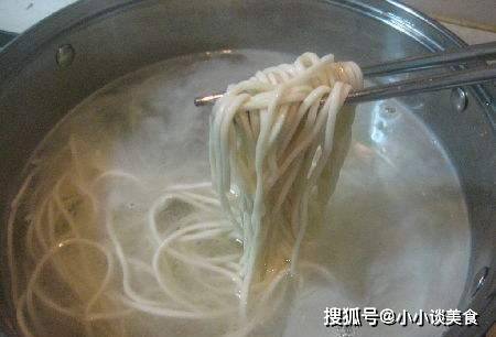 然後等水沸騰後再相應加入冷水。其實面條要記得用筷子攪拌,不然一不小心就會粘在一起,然後等水再燒開,這樣面條就沒熟瞭。它會粘在一起,味道更好。如果想要面條有嚼勁,建議煮好後用冷水多洗幾次,口感會更好。