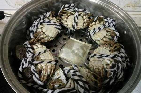 4、市場上買來的螃蟹有些不會系繩子,所以有些螃蟹要自己系繩子。繩子的作用並不是讓螃蟹拼命掙紮,防止螃蟹失去腿。