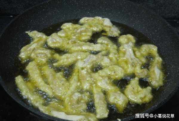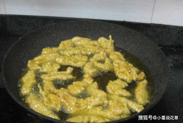 第四步:肉條醃好後,放入面糊中,讓每塊肉都和面糊均勻。炒鍋燒熱油,將炒鍋燒熱,加入適量的油,待炒鍋熱,開始微微冒煙時,將肉一塊一塊放入鍋內,慢慢炒。中火,直到每塊肉都炸至金黃。炸好後取出,瀝幹油,再放回鍋裡再炸,這樣吃起來更香脆可口!