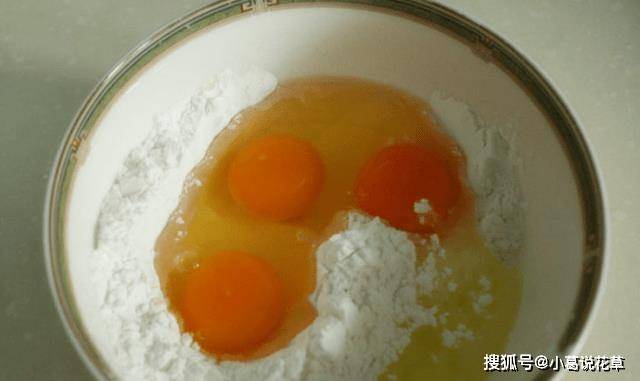 第三步:準備一個大碗,把買來的紅薯淀粉放入碗中,打入三個雞蛋,用打蛋器攪拌均勻。雞蛋不僅會變得更順滑,還能讓面糊的顏色更好看,這樣做出來的酥肉色澤金黃,香脆可口。雞蛋加入紅薯淀粉後,攪拌成細膩的面糊。