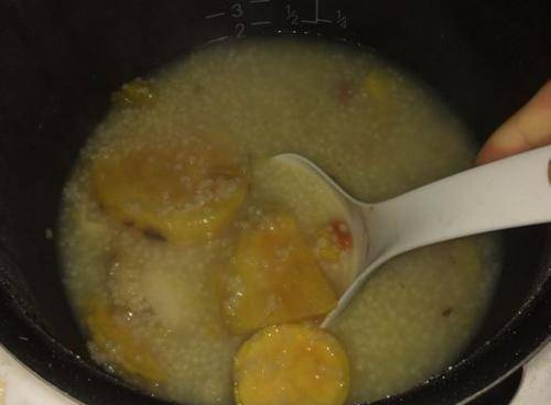 這是紅薯小米粥的做法。我們在裡面加瞭黃冰糖,你可能不熟悉。黃冰糖有很好的止咳化痰作用。老年人,尤其是有吸煙習慣的老年人,更應多食。如果傢裡沒有黃冰糖,可以選擇白糖代替。如果有蜂蜜就更好瞭。