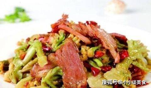 原料:培根、花菜、花椒、大蒜、紅辣椒、蒜苗