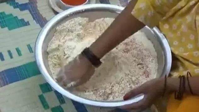 用手將面粉和香料混合均勻。