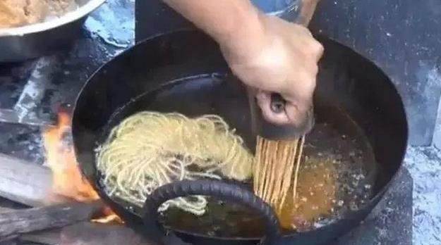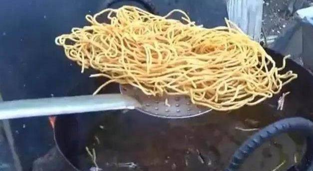 瀝油後盛入碗中,看起來更像方便面,可以直接吃,也可以加點調料蘸著吃。