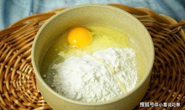 第三步:將雞蛋打入面粉中,慢慢攪拌均勻。