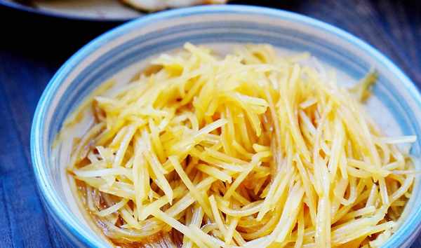 【涼拌土豆絲】這道菜是我傢早餐餐桌的“常客”,做法簡單,開胃爽口,大人孩子都愛吃。涼拌菜是早餐最好的選擇,既快手又營養。這道涼拌土豆絲開胃爽口,全傢都愛。說是涼拌,其實土豆絲也要焯一下,時間無需太長,用不瞭半分鐘就好。焯完的土豆絲撈出過涼,加入鹽,生抽,醋,白糖和花椒油拌勻。喜歡吃辣的人也可以放些辣椒油。