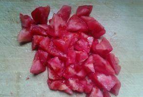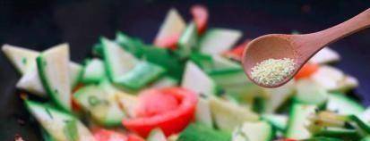3、鍋裡倒入食用油,等油熱瞭,把切好的大蒜撒在鍋裡炸香,然後把西葫蘆和西紅柿放進鍋裡快速炸一下。當你註意到紅番茄湯時,撒上適量的鹽調味。