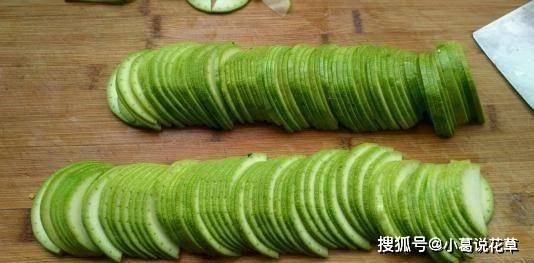 2、西葫蘆也要清洗幹凈,但去皮可以省略。西葫蘆的外皮不會影響口感。將西葫蘆切成薄片,放在盤子裡。這時候最好剝一些大蒜,剁成蒜沫。