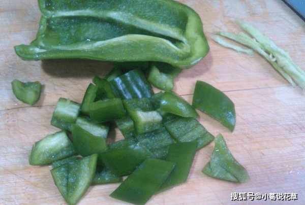 第三步:最後,將準備好的辣椒部分去掉多餘的辣椒籽,再將辣椒切丁。當所有材料都處理好後,將鍋用大火加熱,待鍋熱後倒出。加入適量的油。當油大約有70%到80%熱時,將辣椒放入鍋中並翻炒至香氣釋放。辣椒爆香後,加入蔥蒜繼續翻炒。