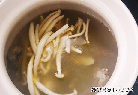第四步,將炸好的鴿子肉放入砂鍋中,加入適量清水開火,蓋上鍋蓋,小火慢燉30分鐘,將之前處理好的香菇材料集合。繼續孵育。鍋;