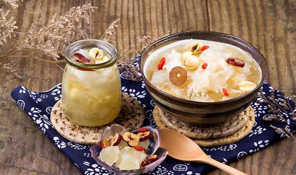 功效:鳳梨銀耳羹中含有豐富的膳食纖維、膠質和果糖等成分,能夠促進胃腸道蠕動,加速新陳代謝,起到促進消化吸收,調理腸胃的作用。