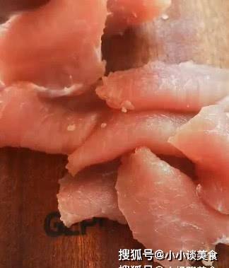 2.挑選最上面的裡脊肉,切成薄片。這裡選擇裡脊肉,因為裡脊肉更嫩,也更結實。