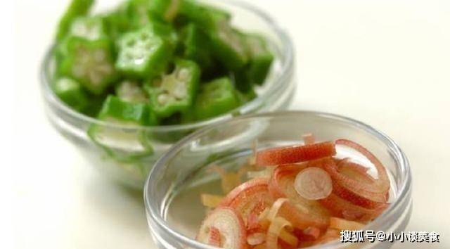 2.把秋葵切成小星星。將野薑切成片。野薑是雲南朋友提供的。北方菜市場很少賣。它的味道比生薑更新鮮。如果不是,那麼它也與蘇羅·薑絲有關。