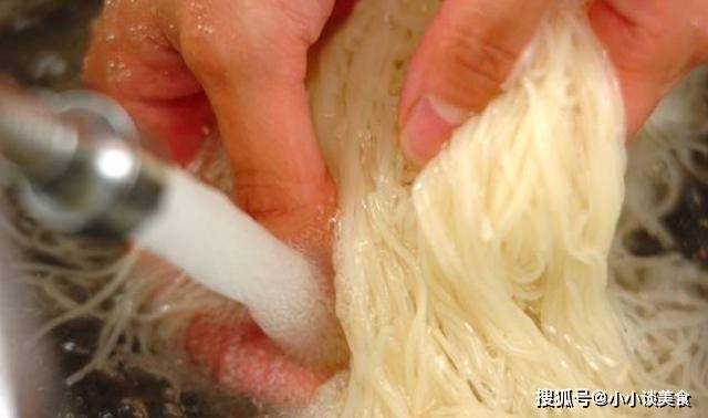 4.掛面按份量煮熟,放在水龍頭下冷卻爽口。放上我們之前做的涼拌醬,簡直不要太好吃!