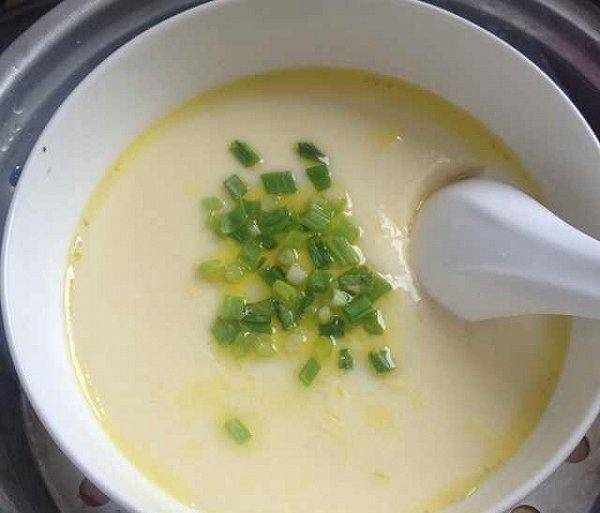 然後在雞蛋水裡加點香油或者茶樹油,蓋上保鮮膜準備蒸。將水放入鍋中煮沸。鍋燒熱後,將蓋好的雞蛋放入鍋中,煮約5-10分鐘。煮沸後不要急著取出,關火,讓雞蛋在鍋裡泡一會兒,這樣可以防止雞蛋因冷熱溫度而裂開。上菜前撒上切碎的洋蔥。如果你喜歡清淡的醬油,加一點醬油,你可以直接從鍋裡端上來。
