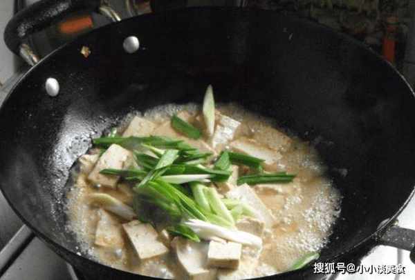 第四步:鍋中加入半碗水。攪拌均勻,用大火燉5分鐘,這樣豆腐吃起來更香軟。豆腐凝固後,將蒜苗放入鍋中,繼續煮三分鐘左右。煮好後加入適量的鹽調味,然後攪拌均勻,即可出鍋。