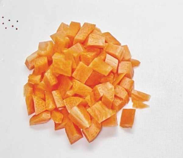 1.胡蘿卜削去表皮,切成小丁。