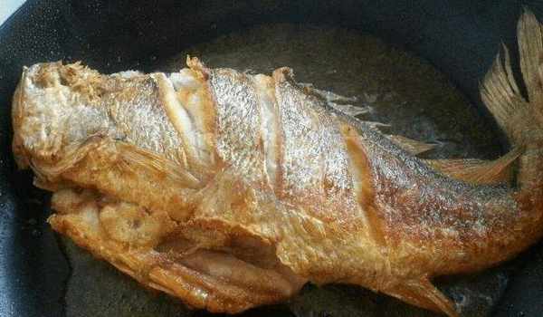 拍好面粉後,就可以炸瞭。油炸時熱量也很重要。這也是不破魚皮的關鍵。先把油加熱到70-80%熱,然後關小火慢慢煎。不能太熱,容易破皮。將另一面煎至金黃色,然後翻過來。不要急著翻動它,煎到兩面金黃就可以瞭。