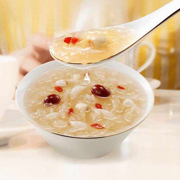 銀耳蓮子湯能滋補身體,調理遺精滑精。這是因為湯中的蓮子中所含的棉子糖。這種物質是老少皆宜的滋補品,對於久病、產後或老年體虛者,是常用營養佳品;而其中的蓮子堿則有平抑性欲的作用,對於青年人夢多,遺精頻繁或滑精者,服食銀耳蓮子湯有良好的止遺澀精作用。