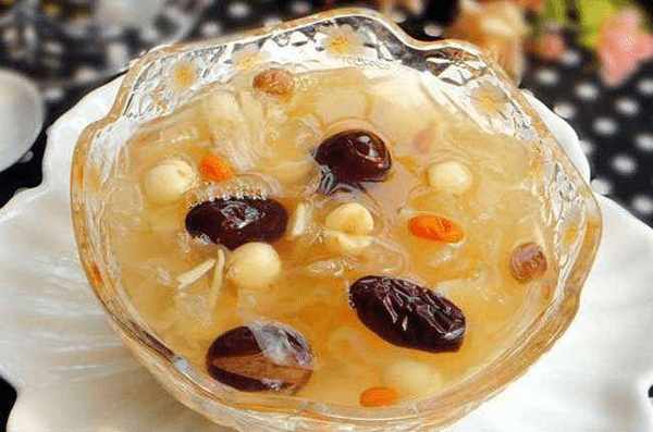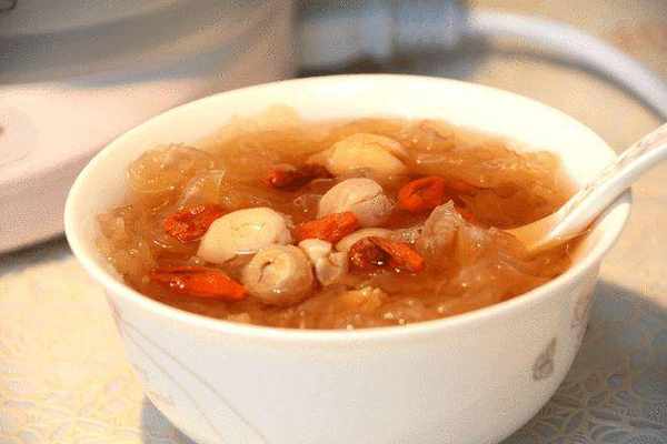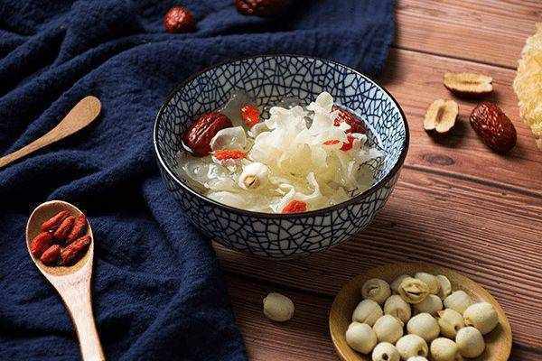 蓮子銀耳湯,加上大棗、枸杞,滋補養顏潤膚,淡化色斑,美容養顏。