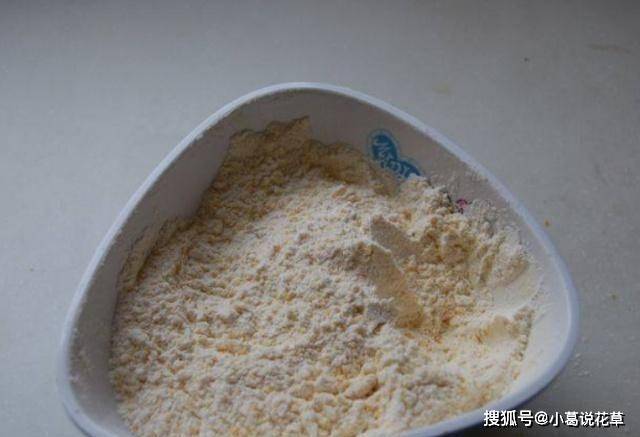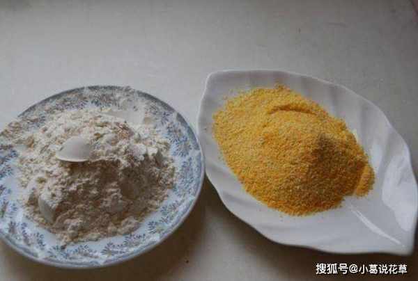 第二步:準備一個饅頭,鋪上一些饅頭的剩菜,饅頭的剩菜可以防止面條在蒸的時候粘在一起,然後取出準備好的玉米面。將煮好的面包屑和玉米粉混合均勻。攪拌均勻後,倒入裝有面碗的小碗中,使每個面碗均勻地沾上饅頭和面粉。