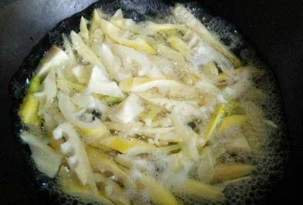 鍋中加入適量的水。水開後加入少許鹽和食用油,不要太多。然後將春筍放入水中,稍稍焯一下水,然後將春筍取出,用冷水沖涼,在一碗冷水中浸泡片刻。一般小廚都是泡半小時以上。炒第一道菜的時候春筍就做好瞭,等菜快熟瞭就可以做春筍瞭。