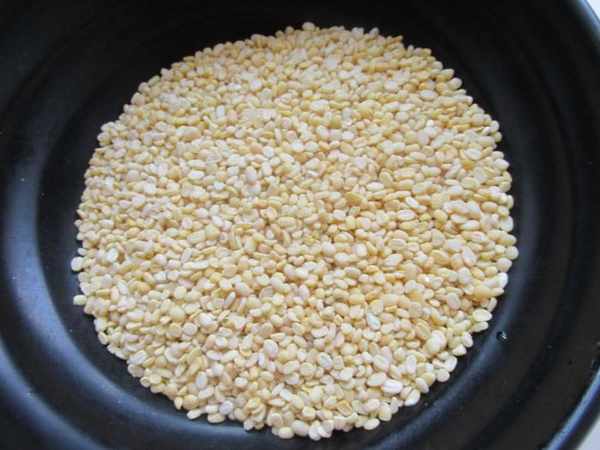 去皮綠豆適量,多少可以隨意,洗淨後用清水浸泡開。去皮綠豆中中一樣含有多種天然消炎殺菌成分,而且它更易於人體吸收和利用,能有效清除人體內的多種致病菌。還可以清熱祛暑等,是很適合夏天吃得一種食材。