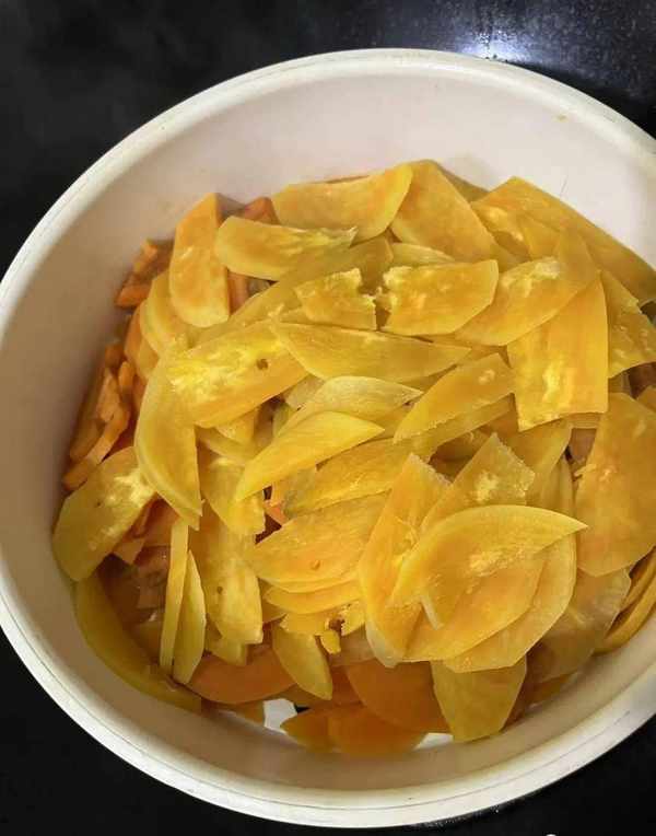 1.備好的地瓜洗凈,然後切片放在鍋中蒸煮。蒸熟後的地瓜取出,然後用勺子給它們攪拌成泥;