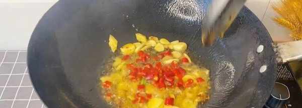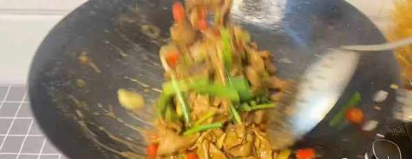 我們提前燒鍋預熱,這一步非常新的。把鍋充分燒熱以後呢,下入稍微多一些色拉油,然後呢倒出來多餘的油鍋留底油,然後下入提前準備好的豆瓣醬,炒出豆瓣醬的紅油,炒出醬香味。隨後下入提前準備好的。薑、蔥蒜還有小米椒,提前開最大火,煸炒出小料的香味,隨後下入剛才處理過的豬肝,猛火快炒,把豬肝炒到發白,炒至六七時尚,這個過程也就在20秒左右的時間。