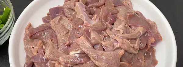 切好的豬肝放入盆中,下一步我們把豬肝進行初步的處理,把豬肝放入流動水中進行抓洗,盡量給它多洗兩遍,沖洗掉裡面的血水,沖洗過後倒出。控水,重新倒回盆中。