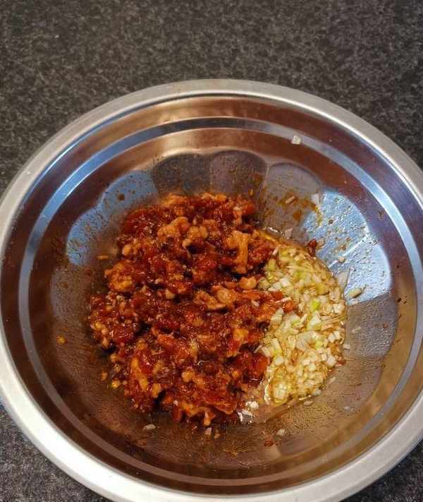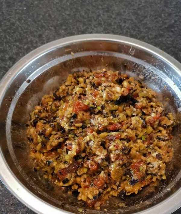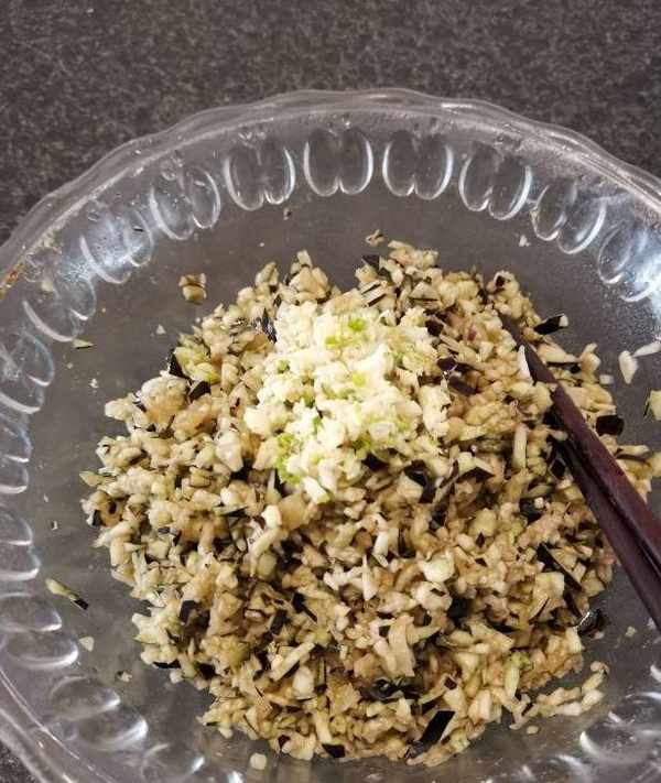 小貼士:用這種做法調出的餃子餡,即使茄子不殺水,調出的餡也不會出水。