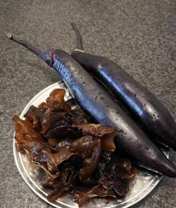 1、茄子洗凈、木耳提前浸泡。