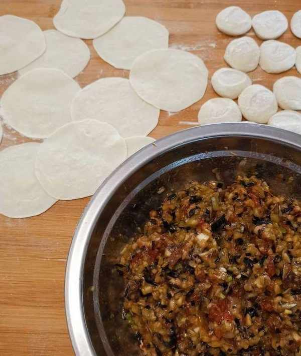 茄子隻是洗凈切碎,沒有如以往那樣放鹽殺水;調肉餡時也沒有放花椒水;而是讓茄子和肉餡自然融合,相互補充吸收,原汁原味!