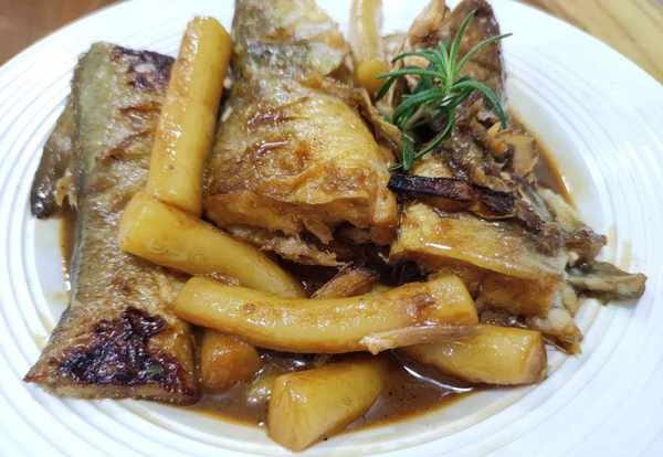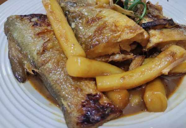 新鮮的魚,年糕,生薑,食鹽,白糖,醬油,食用油,