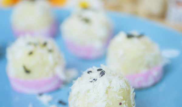 4.紅薯泥加入部分鱈魚蓉,攪拌均勻後捏成小球,再把小球放入剩餘鱈魚蓉滾一滾。即可作為主食給寶寶吃