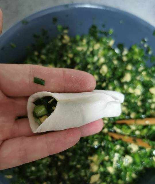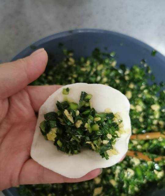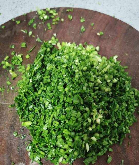 3.韭菜洗幹凈,控水後切碎備用。