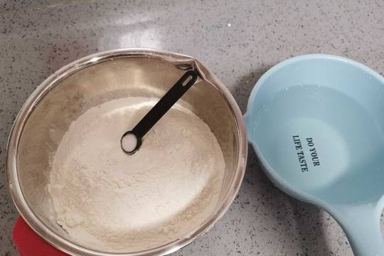 1.準備面粉,鹽,水。