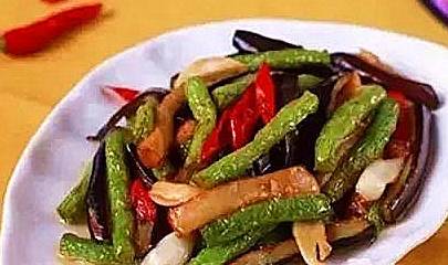 豆角250g、茄子250g、油適量、蠔油35ml、大蒜4瓣、紅辣椒4個、生抽15ml