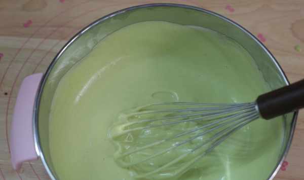 【材料】雞蛋:4個、面粉:40克、菠菜汁:40克、細砂糖:40克、玉米油:40克、醋:幾滴、淡奶油:200克、打發淡奶油用細砂糖:18克、芒果:1個