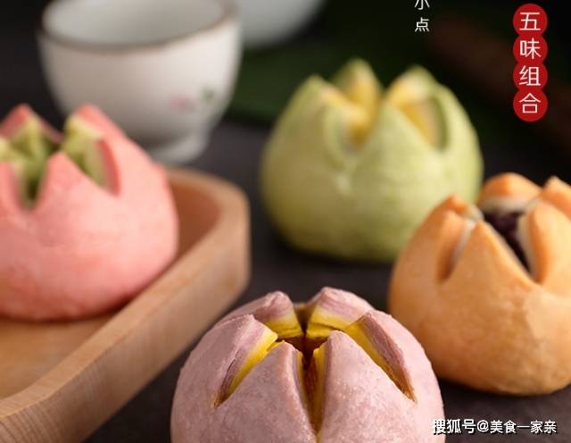 這是來自杭州糕點大師的作品,叫做酥皮荷花酥。相傳發源自南宋臨安,是極富韻味的江南雅致小點心。一共5種口味,分別是紫薯餡、奶黃餡、抹茶餡、南瓜芝士、鳳梨餡。每一種餡兒都是真材實料,好吃看到見。