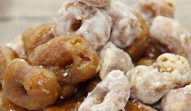 陸良的麻衣馓子是用麥面作原料,和好面後扭成“千鈞扣”油炸的糖果。色澤金黃,表層穿上芝麻糖衣,特點是香、脆、酥、甜,特別是內裡灌滿瞭糖飴,甜潤柔膩。陸良“麻衣馓子”已有200年的歷史,是地方傳統風味食品,也是饋贈親友的佳品。