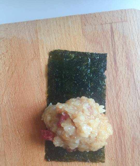 海苔一包、糯米200克、廣式香腸100克、蝦50克、料酒5克、生抽20克、蠔油20克
