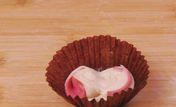 。3.將面團從切口處向兩邊翻開,切面朝上放入杯盞中(圖4)